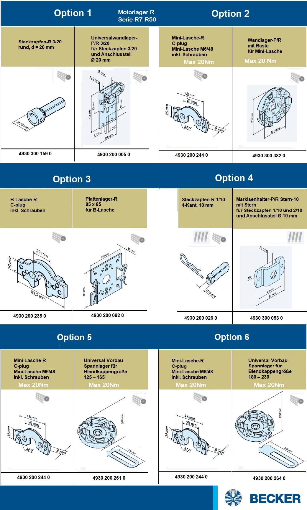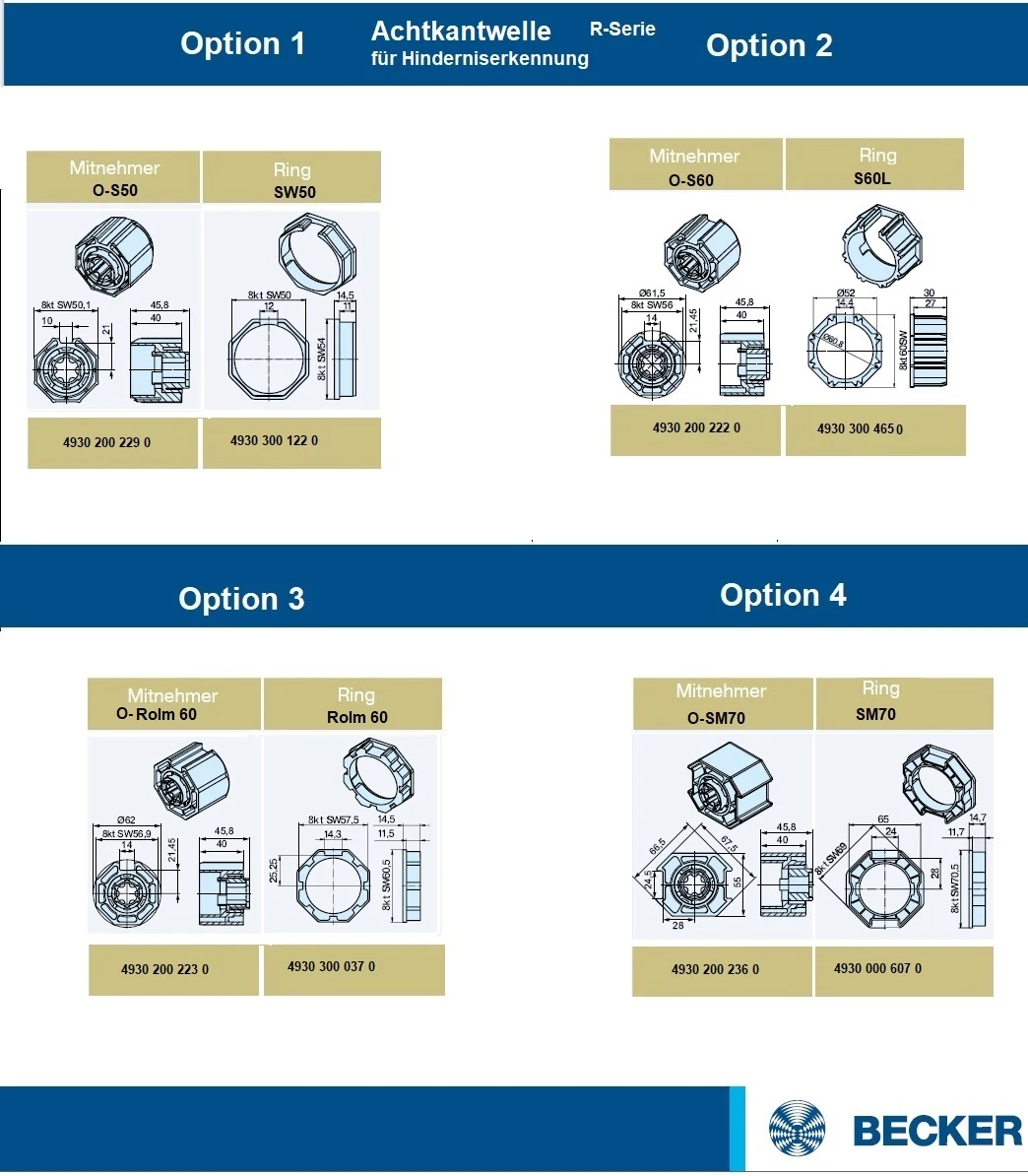 Becker - Rollladenantriebe mit Funk B-Tronic R8-B01 bis R40-B01, Serie R, Typ B01