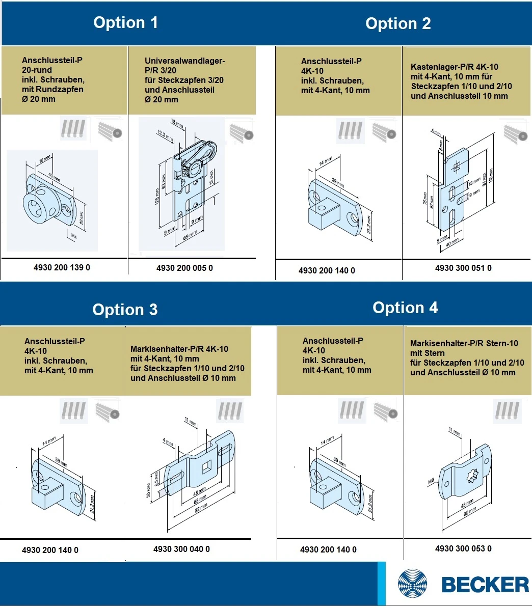 Becker - Universal-Markisenantriebe mit Funk P5-C12 bis P9-C12, Serie P, Typ C12