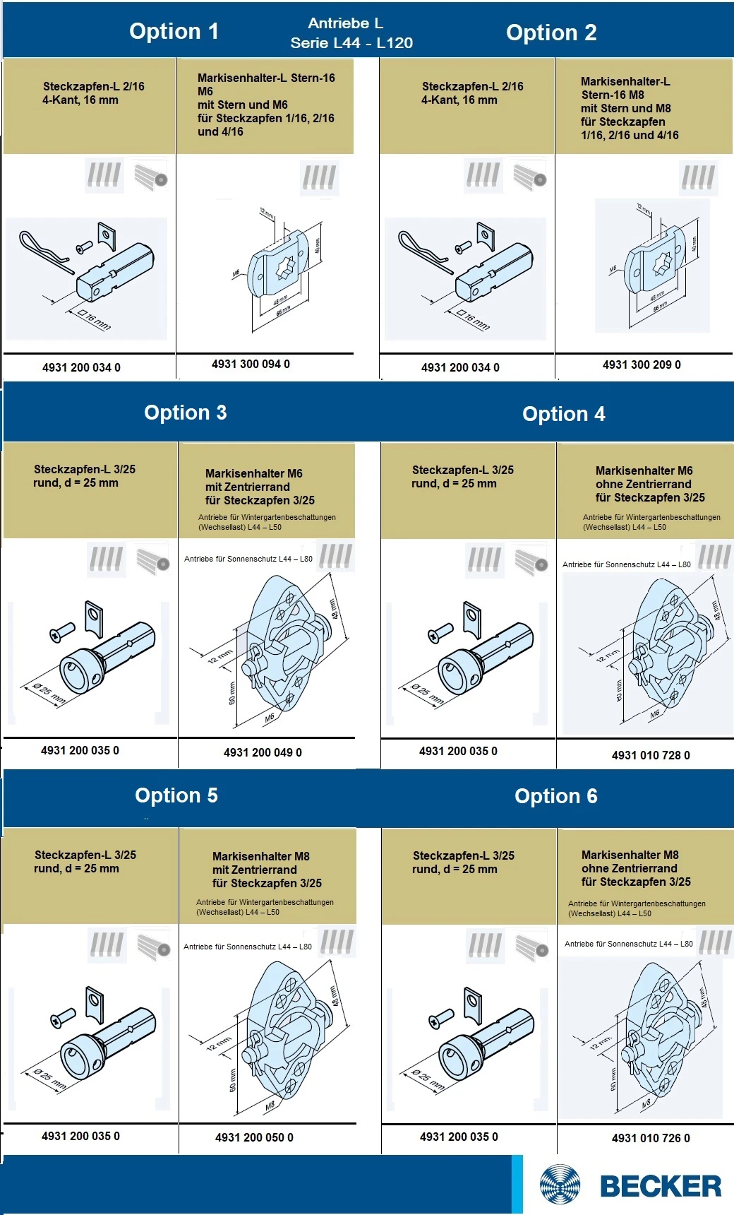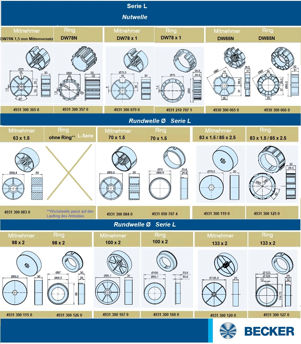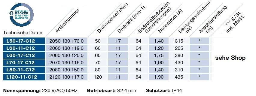 Becker - Universal - Markisenantriebe  mit Funk, L50 -C12 bis L120-C12 , Serie L , Typ C12