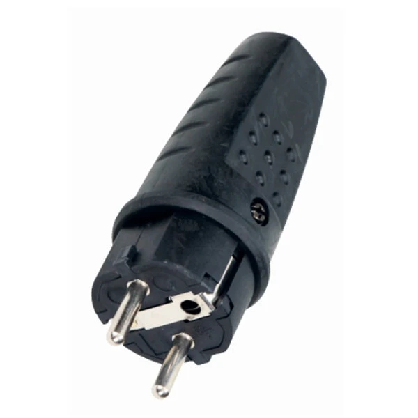 WTS -Schuko-Vollgummi-Stecker IP 44 mit zentraler Kabeleinführung und Knickschutz, Farbe schwarz