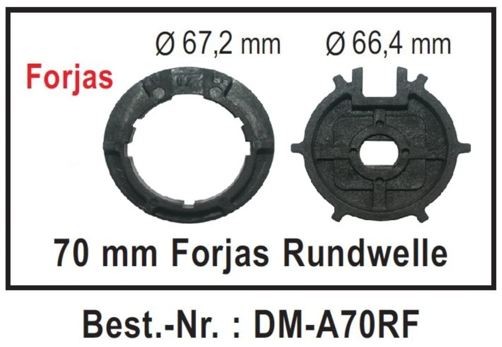 WTS - Adapterset DM-A70RF : 70 mm Forjas Rundwelle für alle Rohrmotoren Ø 45 mm, Serie DM / DMF / ME / DMEF / DMH