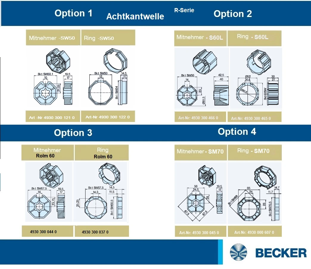 Becker - Rollladenantriebe R4-M17 für schmale Fenster für Wickelwellen ab Ø 50 mm