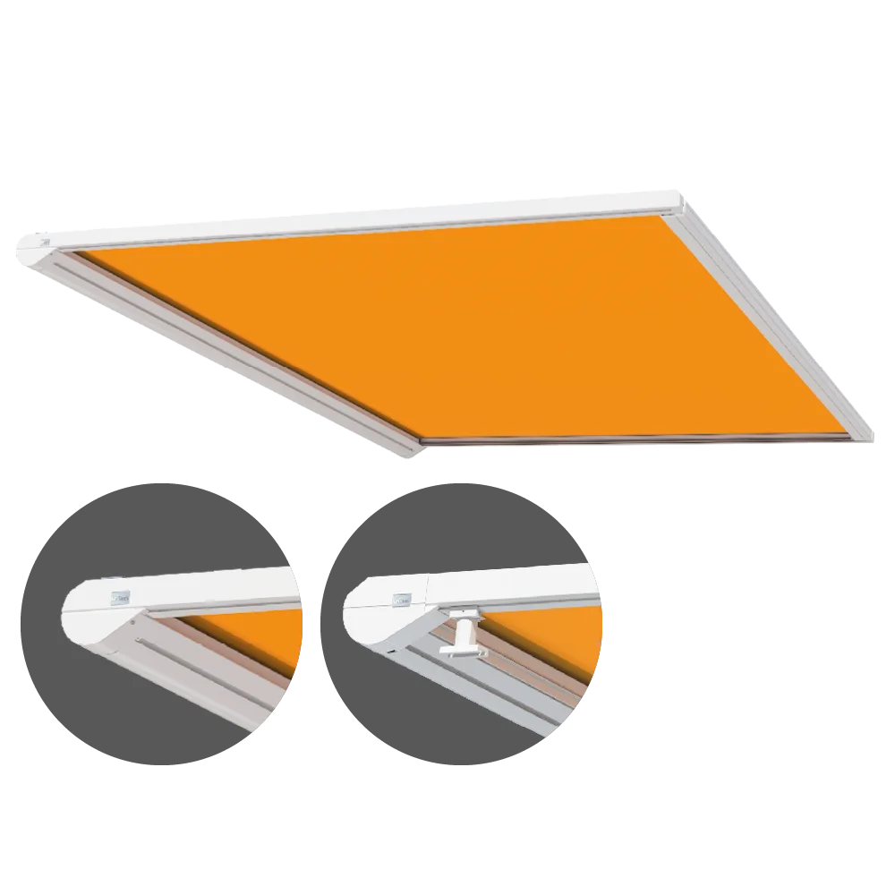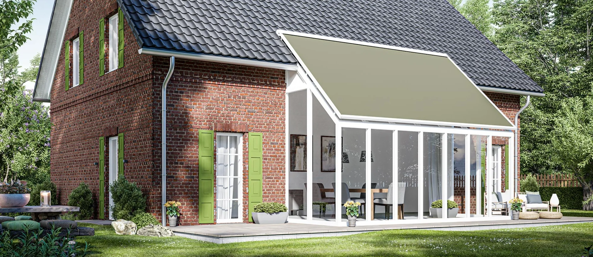 Die Aufglasmarkise Portofino bietet lückenlosen Sonnenschutz ohne störende seitliche Lichtschlitze.Die geschlossene Zip-Führung des Markisentuchs ermöglicht dabei einen stets straffen Tuchsitz. Bei optionaler Ausstattung mit Funksteuerung lässt sich die Markise auch in die Hausautomation einbinden. Zusätzlich erhältliche Sonnen-, Wind- und Regensensoren sorgen für noch mehr Komfort und fahren die Markise automatisch aus und ein, auch wenn niemand zu Hause ist.