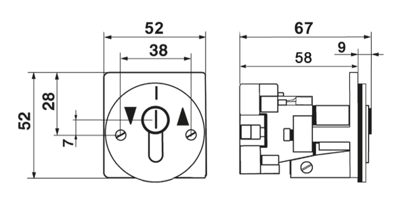 WTS - Einbau/Fronttafel - Schlüsseltaster mit 2 Tast-Kontakt, 1-polig AB/AUF für den Fronttafeleinbau