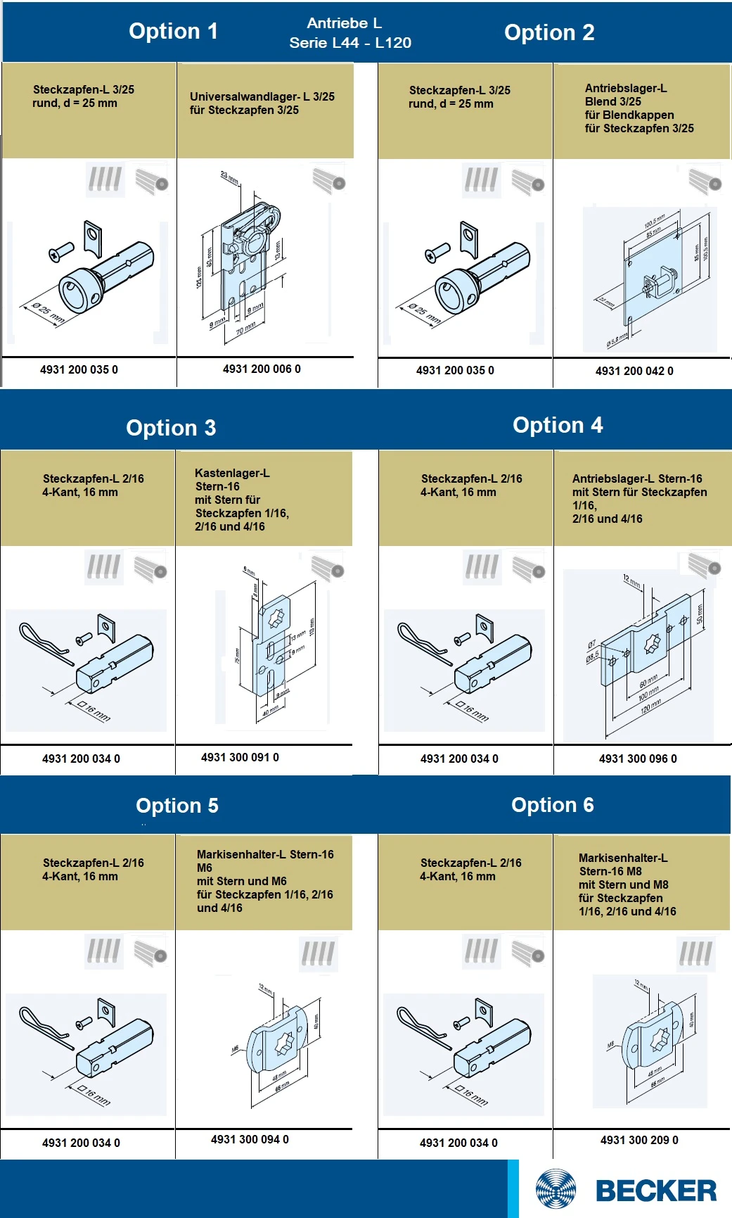 Becker - Rollläden Gleichstromantriebe  L35-M06 bis XL200-M06 Serie L bis XL, Typ M06