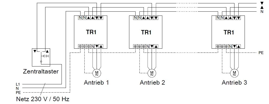 Zum Parallelschalten mehrerer Antriebe mit mechanischer Endabschaltung