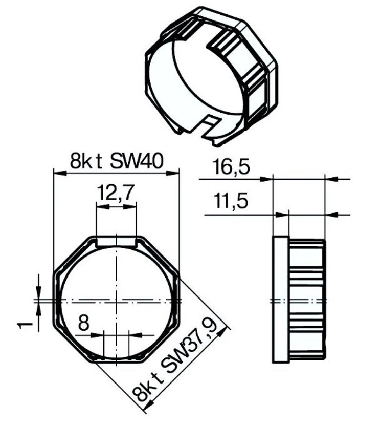 Adapterset für Achtkatwelle O-S40 ,für sensible Hinderniserkennung für Becker Rohrmotoren Baureihe P