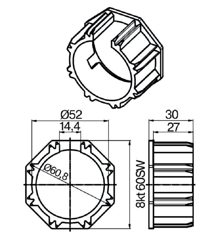 Adapterset für Achtkantwelle O-S60 , für sensible Hinderniserkennung für Becker Rohrmotoren P* und R Serie