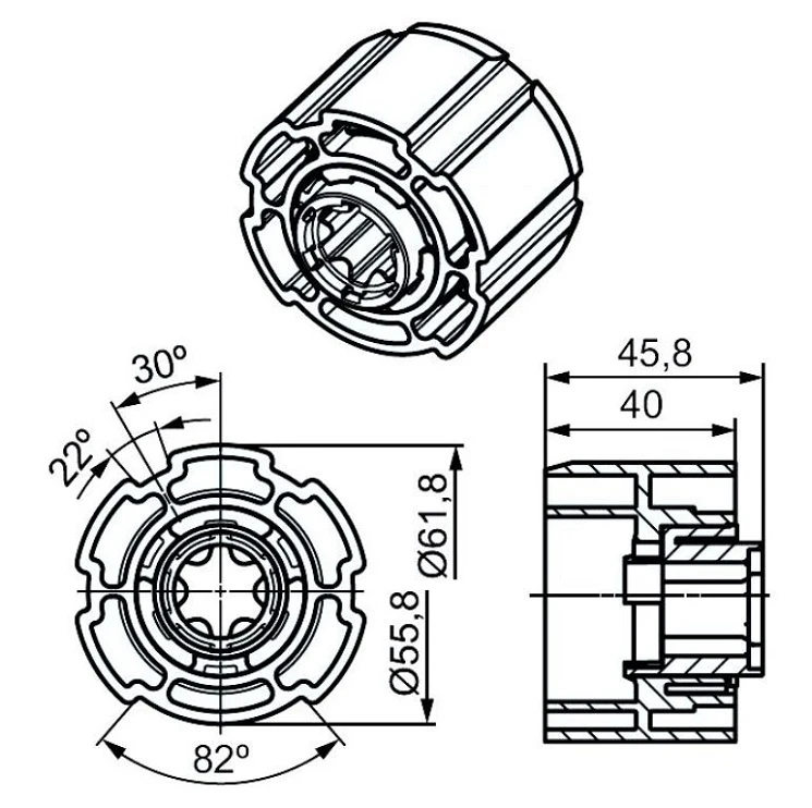 Adapterset für Profilwelle O-E65, für Rohrmotoren Becker Baureihe P und R Serie mit Hinderniserkennung