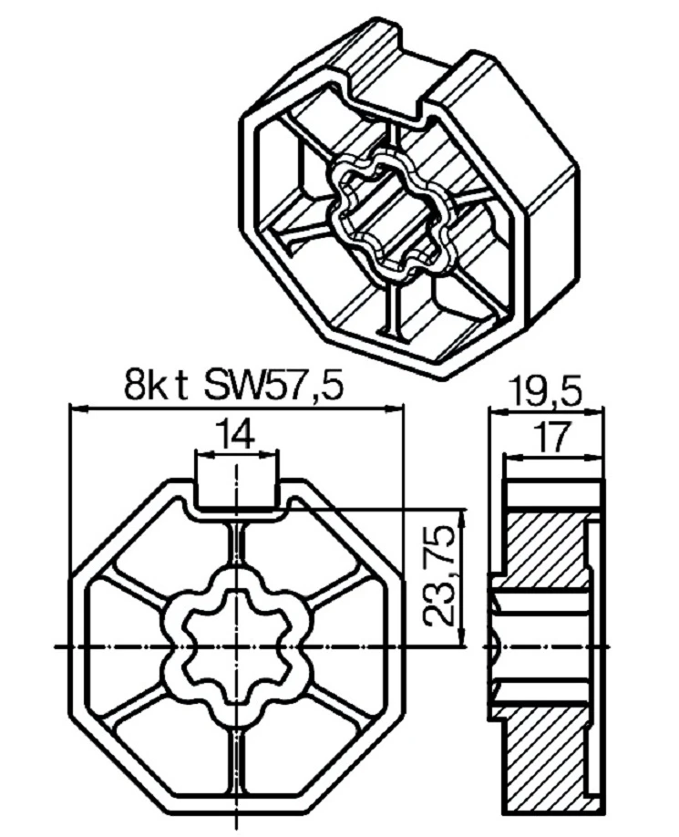 Adapterset für Achtkatwelle Rolm 60 ,für Rohrmotoren Becker Baureihe P und R Serie