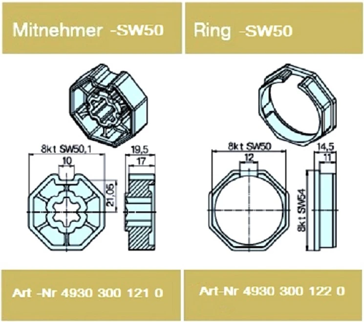 Mitnehmer SW50  Art-Nr. 4930 300 121 0 GTIN-Nr : 4251852909331