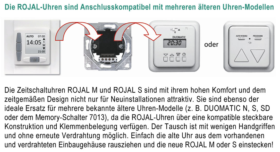 - Möglichkeit der Schnellprogrammierung der Schaltzeiten durch Memory-Funktion (nur ROJAL S).