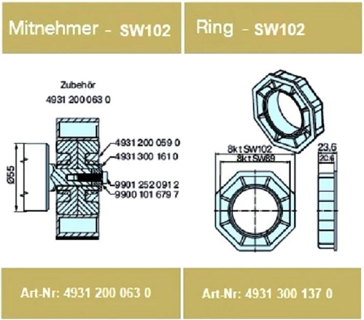 Mitnehmer : SW102  Art-Nr. 4931 200  063 0 - GTIN-Nr. 4251852909492