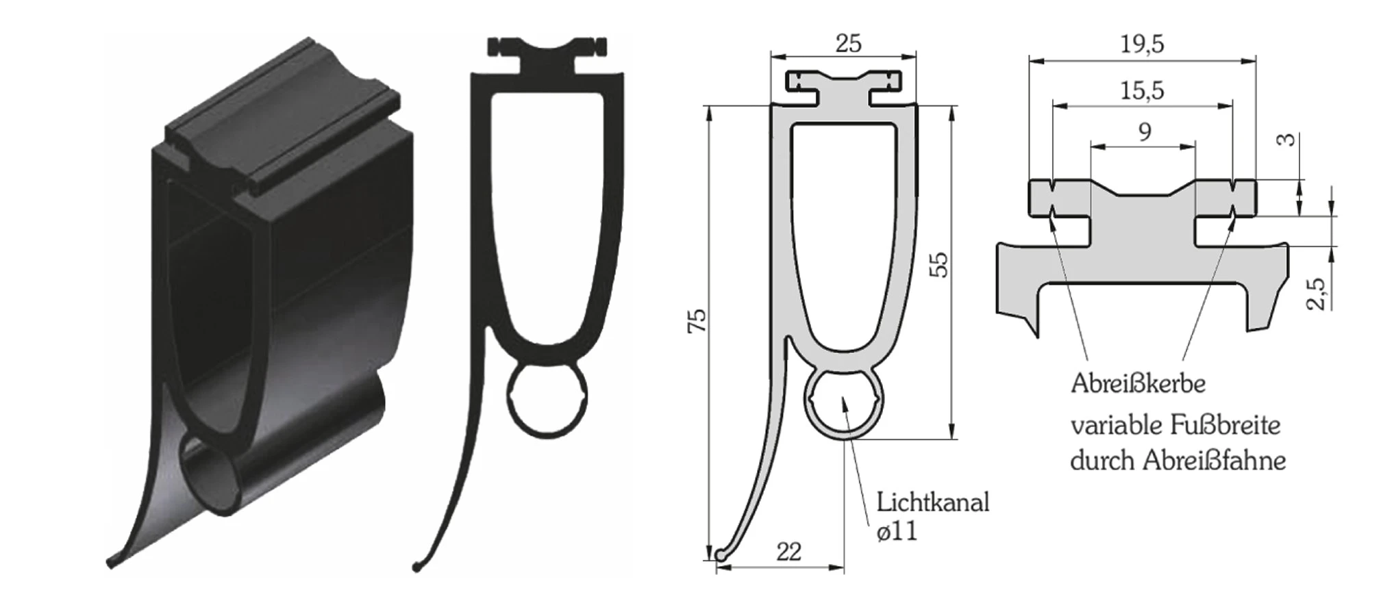 Gummiprofil mit Lichtkanal Ø 11mm