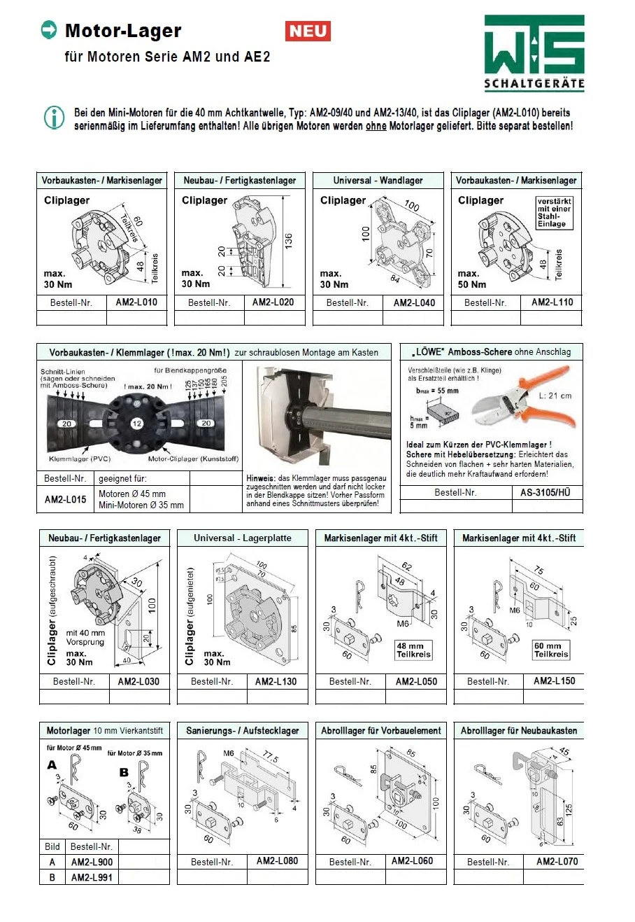 WTS Motor-Lager AM2-L060 für Motoren Serie AM2 und AE2