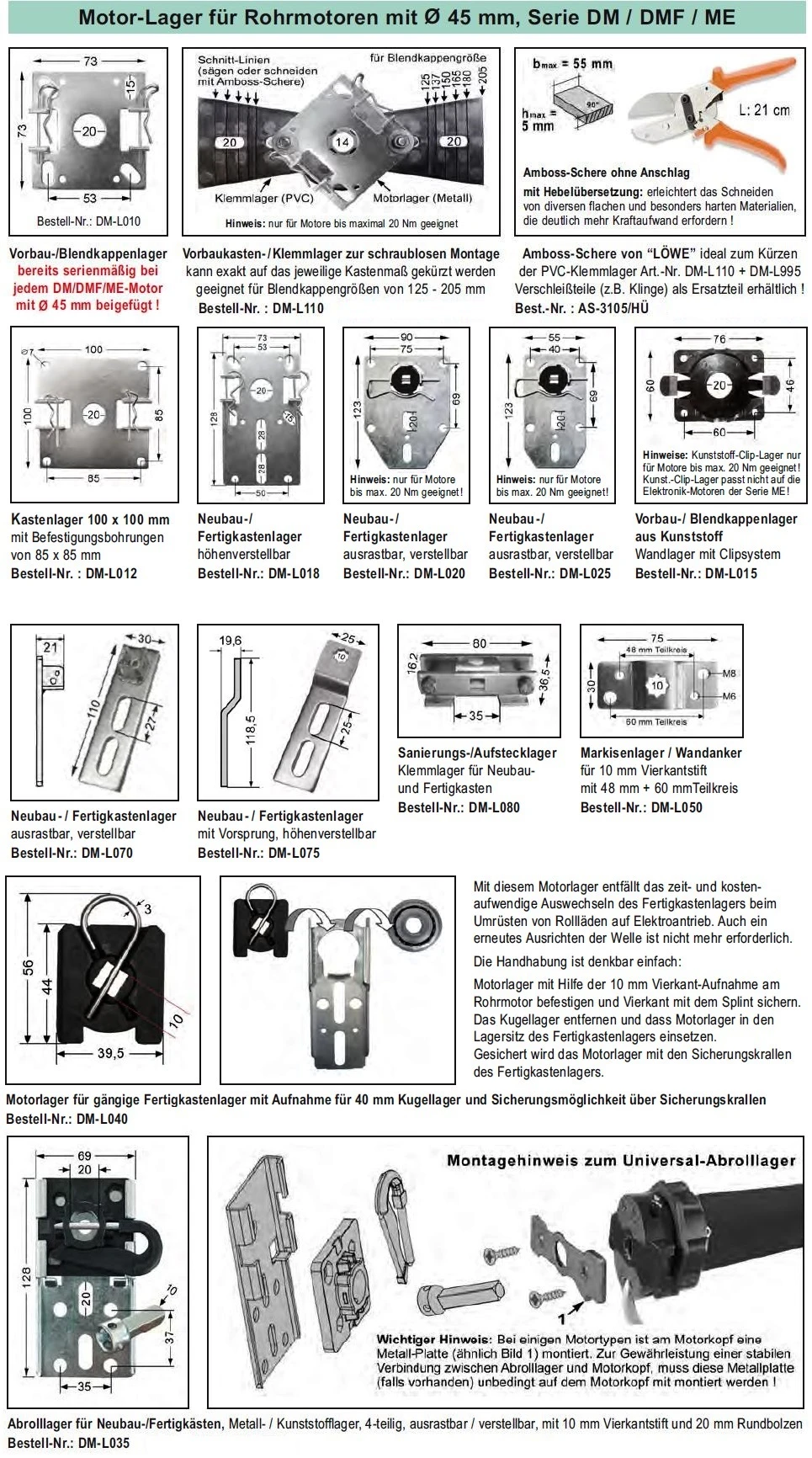 WTS - Neubau - Fertigkastenlager DM-L075 für Rohrmotoren Ø 45 mm Serie DM - DMF - ME