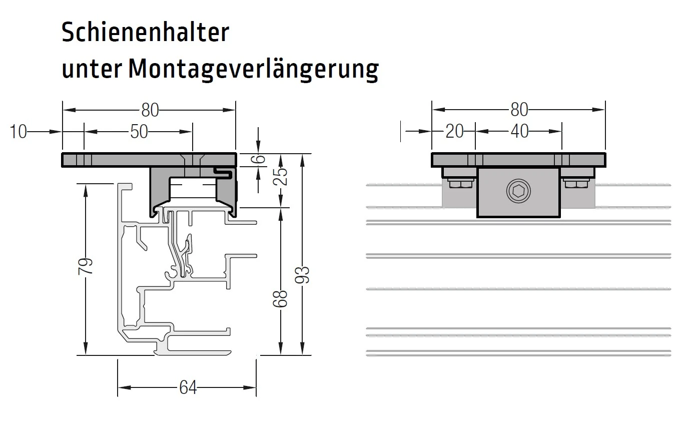 Lieferumfang: 1 x Montageverlängerung + Schienenhalter