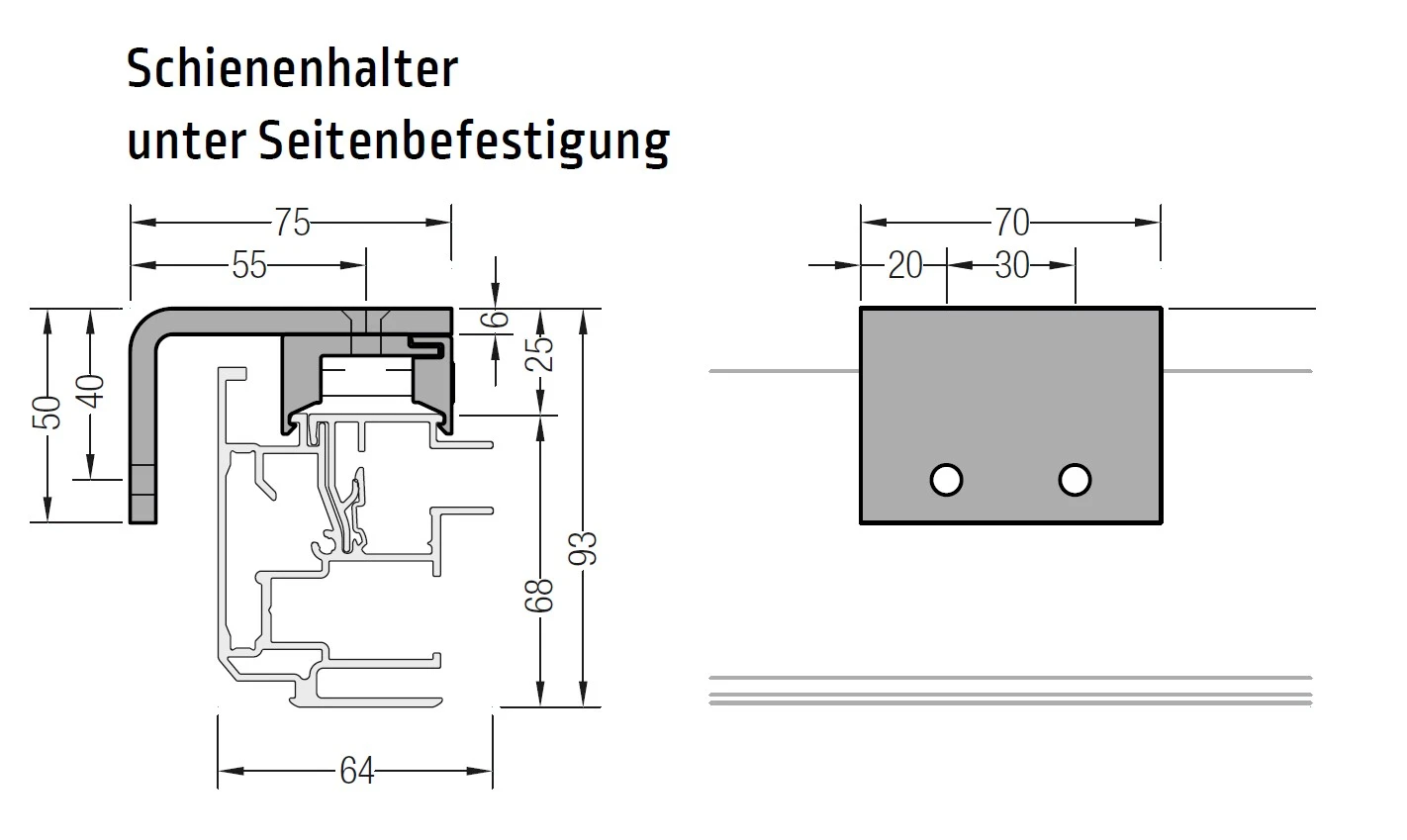 Lieferumfang: 1 x Seitenbefestigung + Schienenhalter