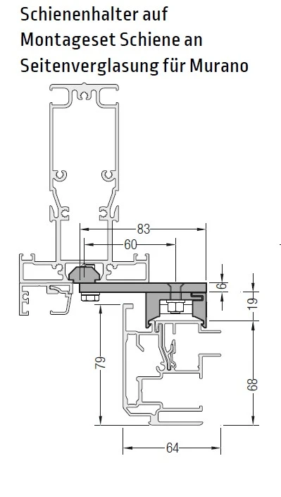 Lieferumfang: 1 x Montageset Schiene an an Seitenverglasung Murano