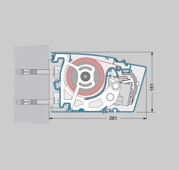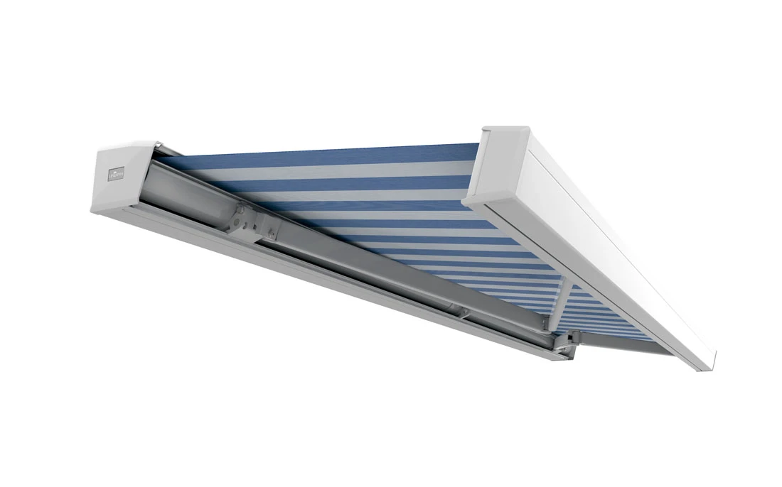 Die nur 16,1 cm hohe, rundum geschlossene Vollkassette schützt das Tuch zuverlässig vor Witterungseinflüssen.