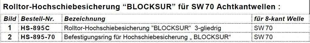 HS-895C :     Rolltor-Hochschiebesicherung BLOCKSUR 3-gliedrig SW 70
