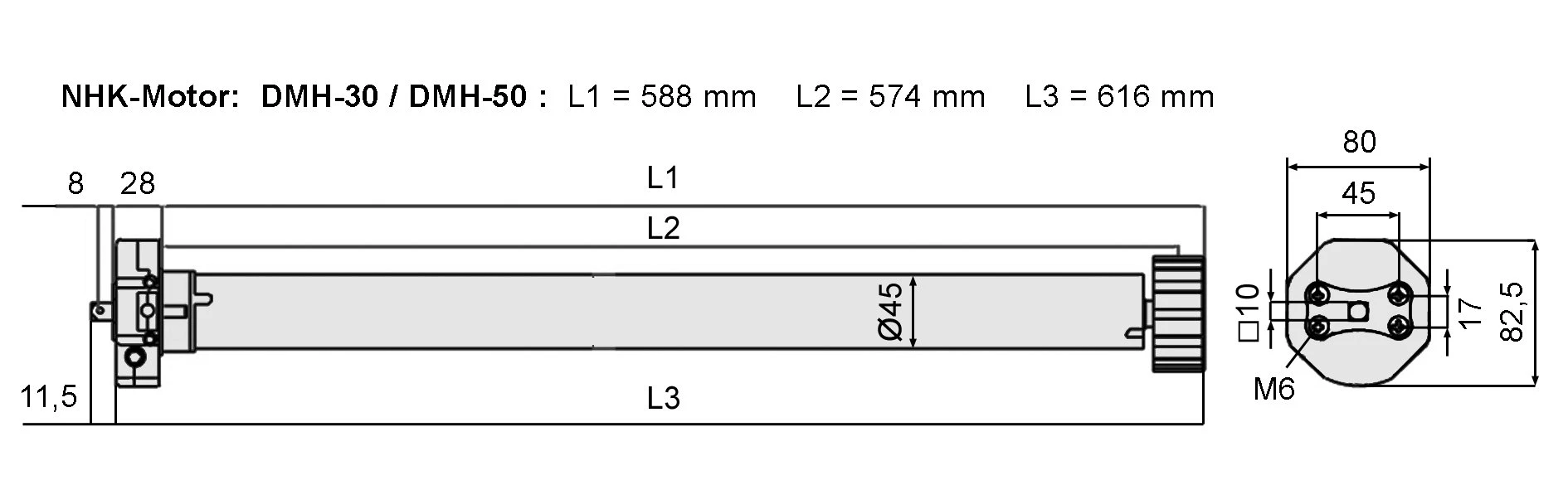 WTS - NHK-Rohrmotoren Serie DMH mit Nothandbedienung durch Kurbelstange Ø 45 mm