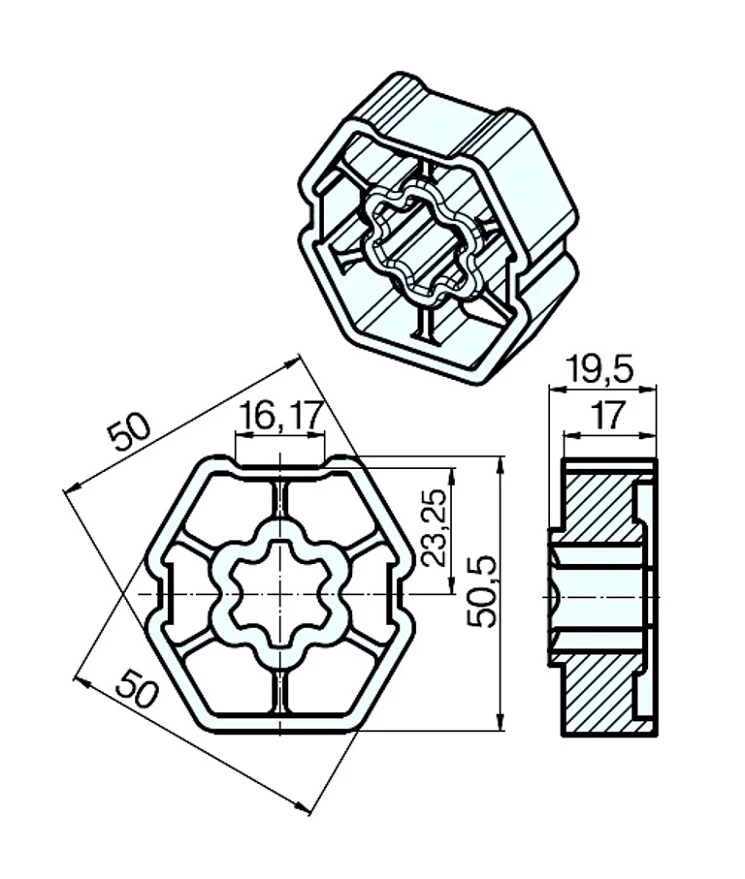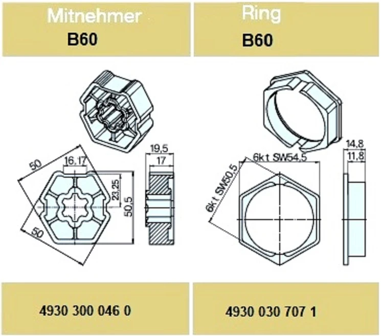 Adapterset B60 für Sechskantwelle,für Rohrmotoren Becker Baureihe P und R Serie