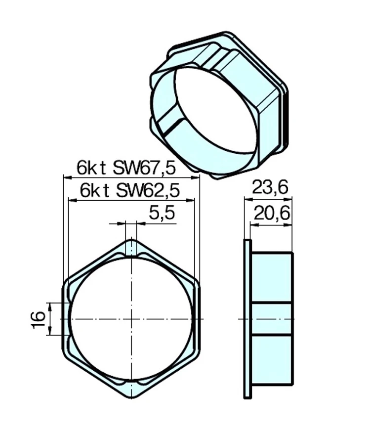 Adapterset bestehend aus Mitnehmer und Ring + Zwischenring 63x1,5 aus Kunststoff .