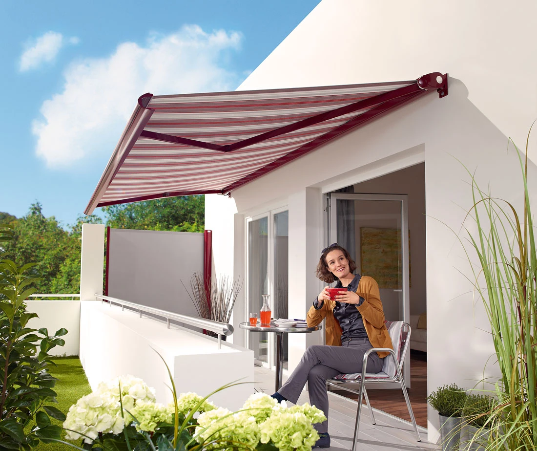 Die kleinste Vollkassette mit selbsttragendem Gehäuse aus dem Hause Lewens ist besonders geeignet für kleine Balkone und Plätze mit geringer Tiefe: Sie bietet eine maximale Breite bis 450 cm und einen maximalen Ausfall bis 250 cm.