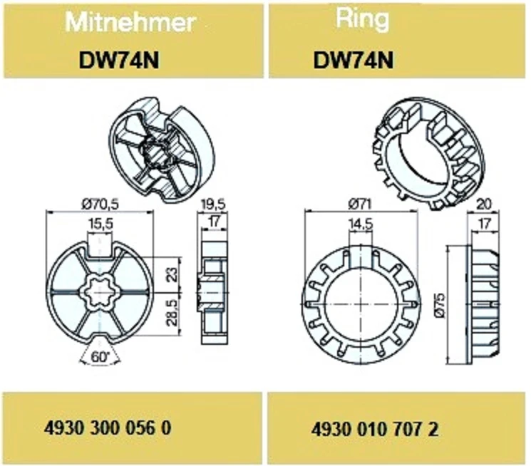 Mitnehmer : DW74N Art-Nr. 4930 300 056 0 - GTIN-Nr. 4251852910313