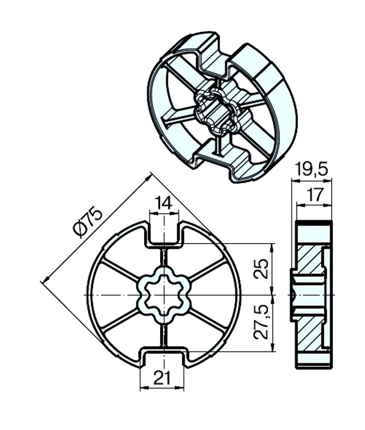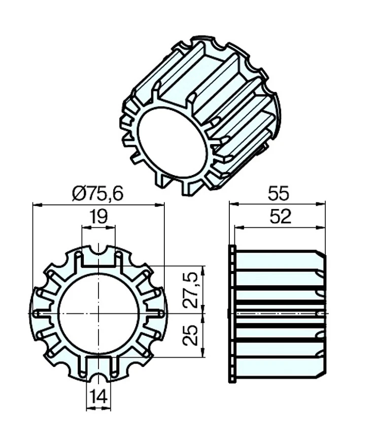 Adapterset für Nutwelle DW78R+F für Rohrmotoren Becker Baureihe R Serie