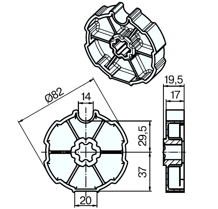 Adapterset für Nutwelle DW85N bis 30Nm für Rohrmotoren Becker Baureihe R Serie