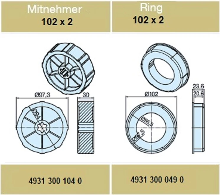 Adapterset für Rundrohr 102 x 2 , für Rohrmotore Becker Baureihe L Serie