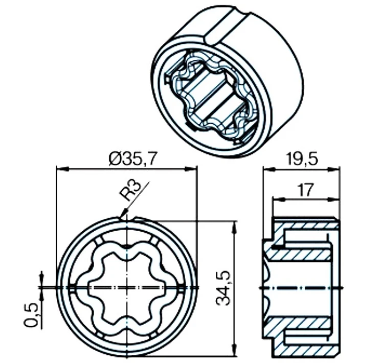 Bestehend aus Mitnehmer ohne Ring aus Kunststoff .