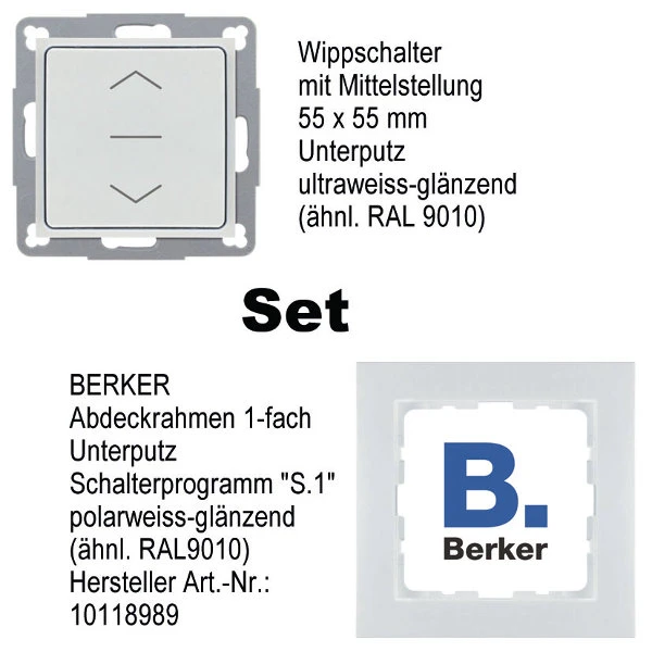 • Wippschalter mit Berker „S.1“ 1-fach Abdeck-/Kombirahmen