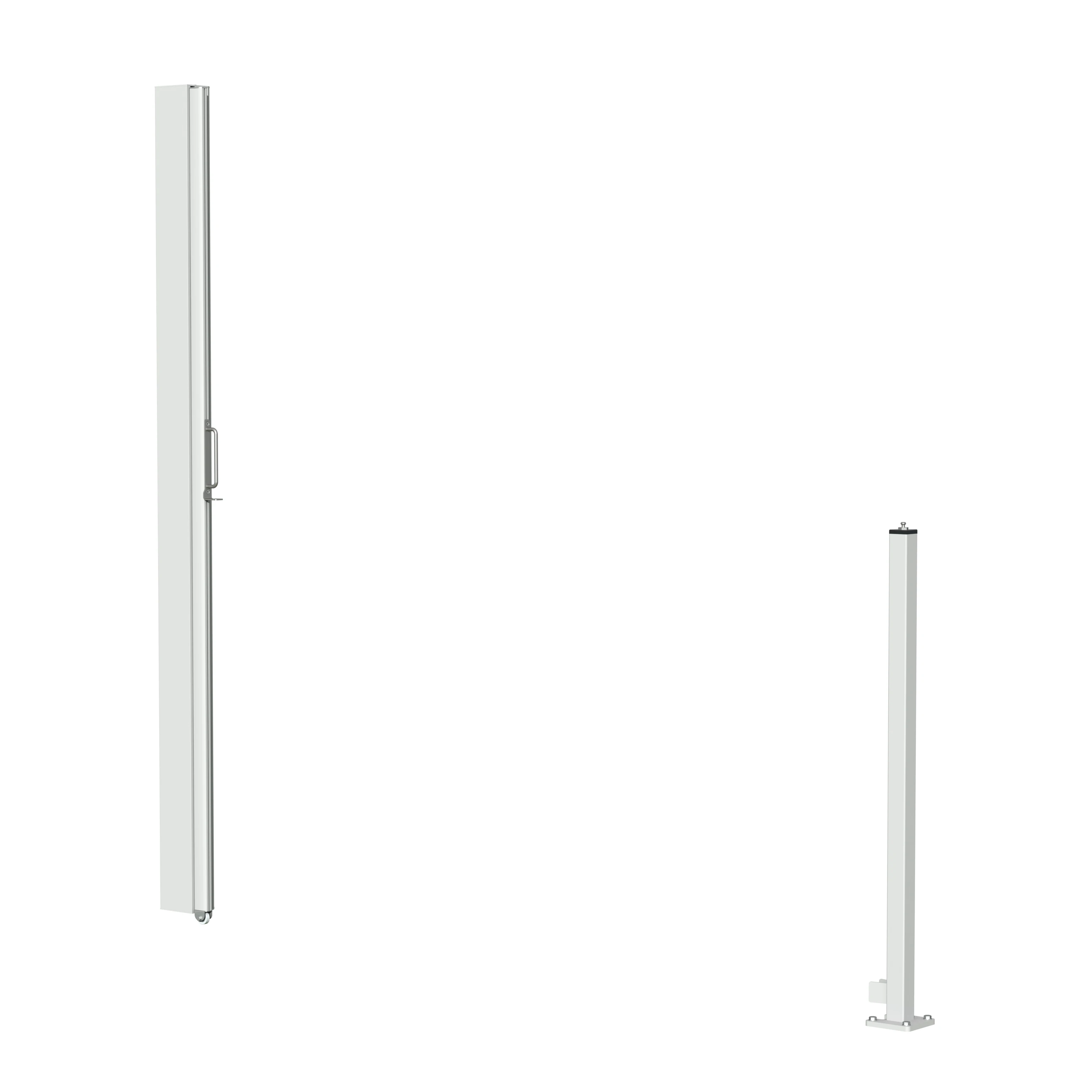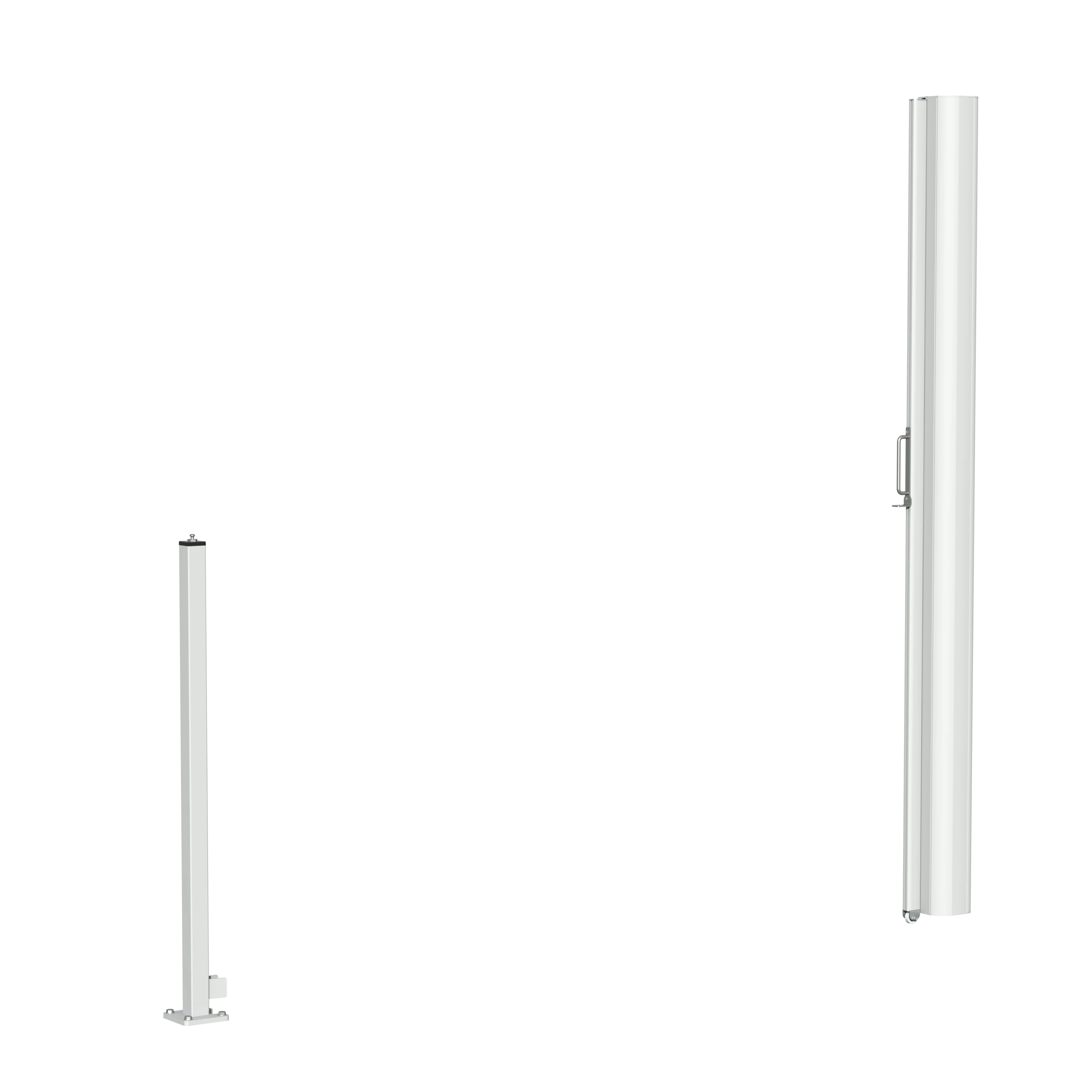 Mit dem Handgriff wird die Micro 700 einfach ausgefahren und am Mast eingehakt. Die Bodenrolle ermöglicht eine leichte Führung. Für eine sichere und komfortable Handhabung ist die Tuchwelle mit einer Rückschlagbremse ausgestattet.